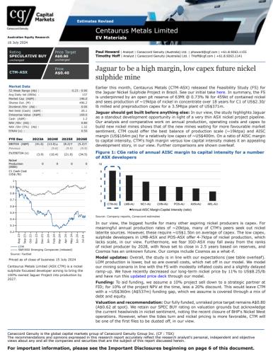 Jaguar should get built before anything else: In our view, the study highlights Jaguaras a standout development opportunity in light of a very thin ASX nickel project pipeline.