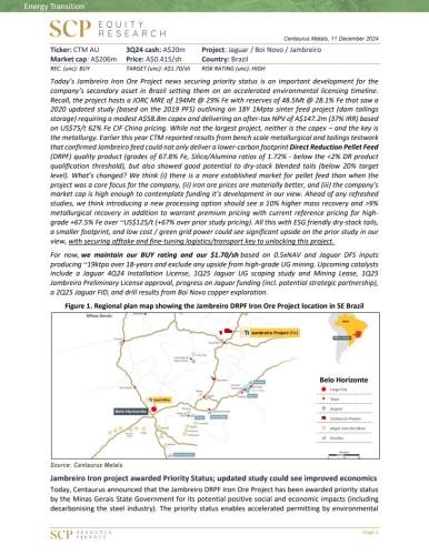 Today’s Jambreiro Iron Ore Project news securing priority status is an important development for the company’s secondary asset in Brazil setting them on an accelerated environmental licensing timeline.