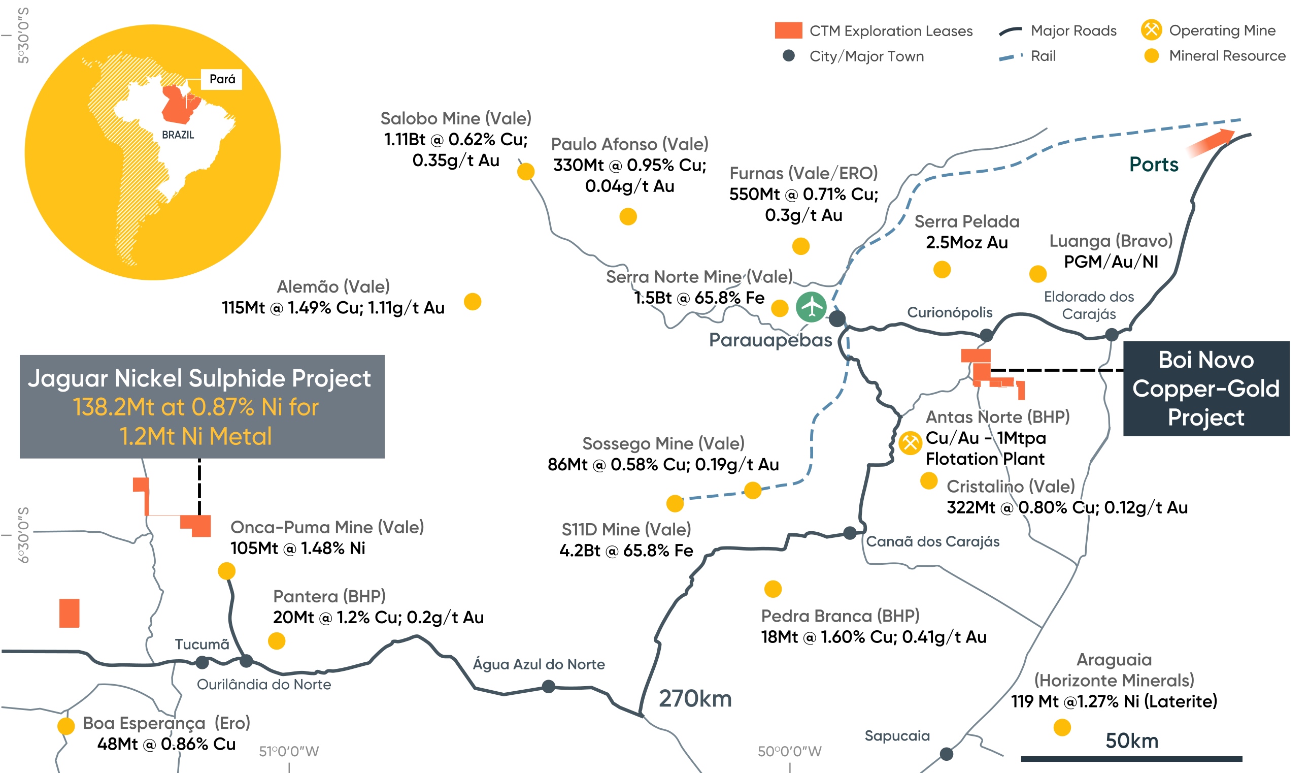 The Boi Novo Copper-Gold Project represents a district-scale copper-gold exploration opportunity in Brazil’s Carajás Mineral Province (CMP), one of the world’s most prolific mineral belts. The CMP is host to globally significant deposits of iron, copper, gold and nickel, and is one of the world’s most active frontiers for Iron Oxide Copper-Gold (IOCG) discoveries.