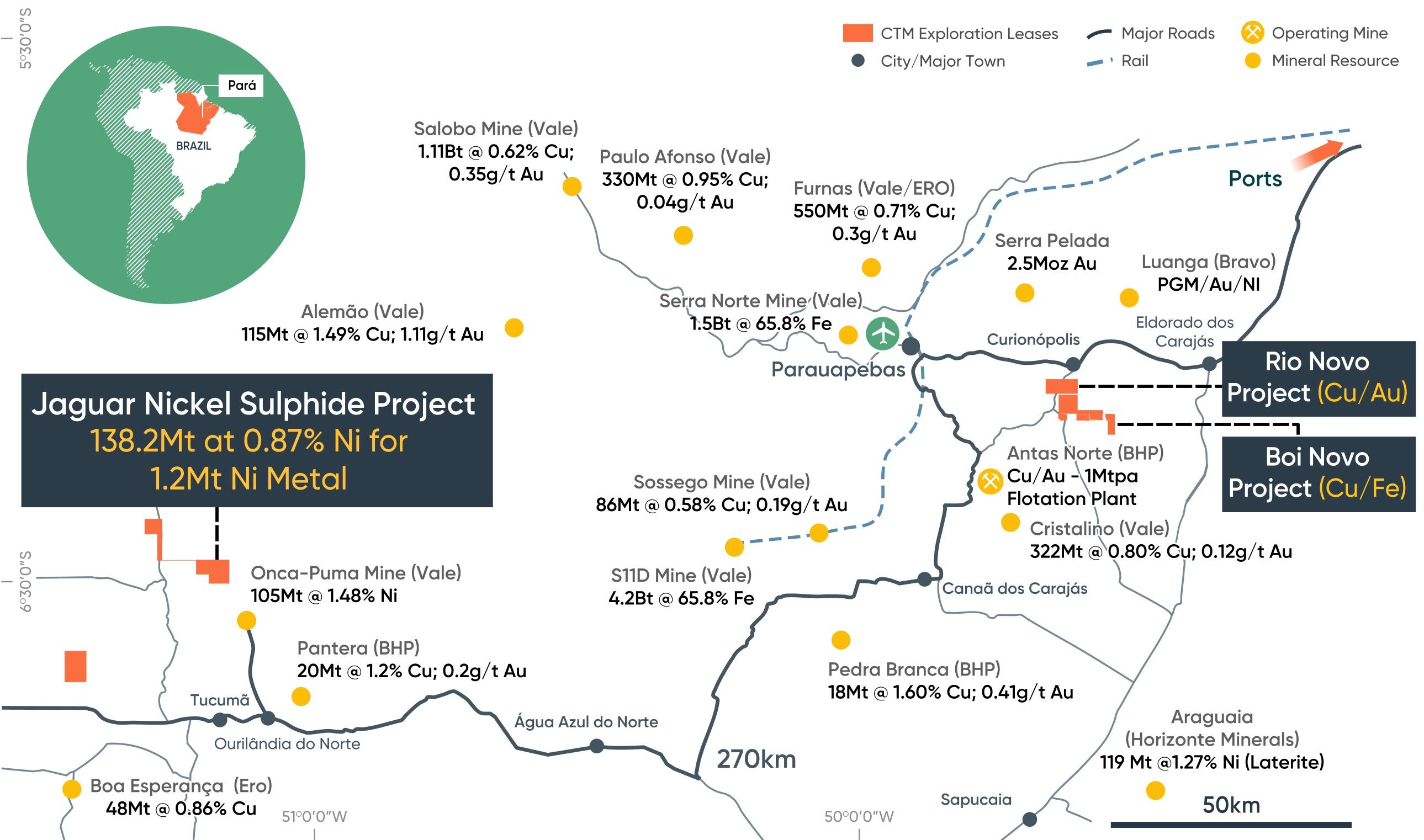The Jaguar Nickel Sulphide Project is located in the western portion of the world-class Carajás Mineral Province of Brazil, and was acquired from global mining giant, Vale S.A., in April 2020. The Jaguar Project includes multiple nickel sulphide deposits and exploration targets within a 30km2 land package.